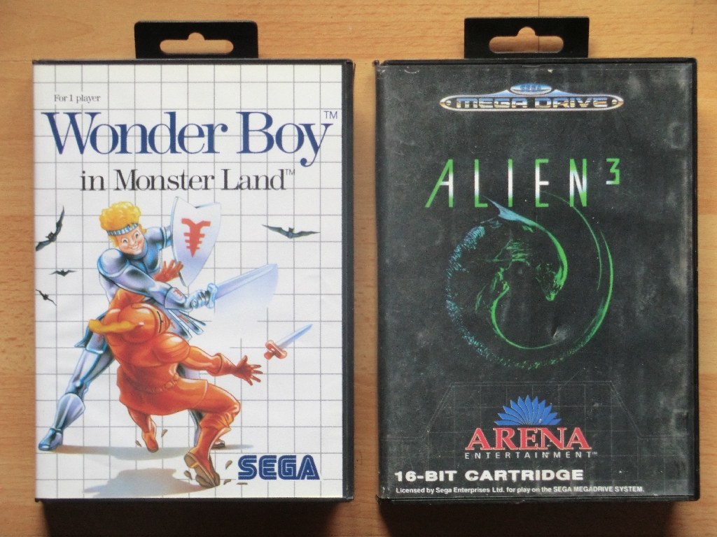 Das erste ist Wonder Boy für das SEGA Master System. Dieses Spiel steht zwar schon in meiner Sammlung aber wie ihr auf den folgenden Fotos unschwer erkennen könnt sieht es etwas schäbig aus und das neue Exemplar ist praktisch makellos.
