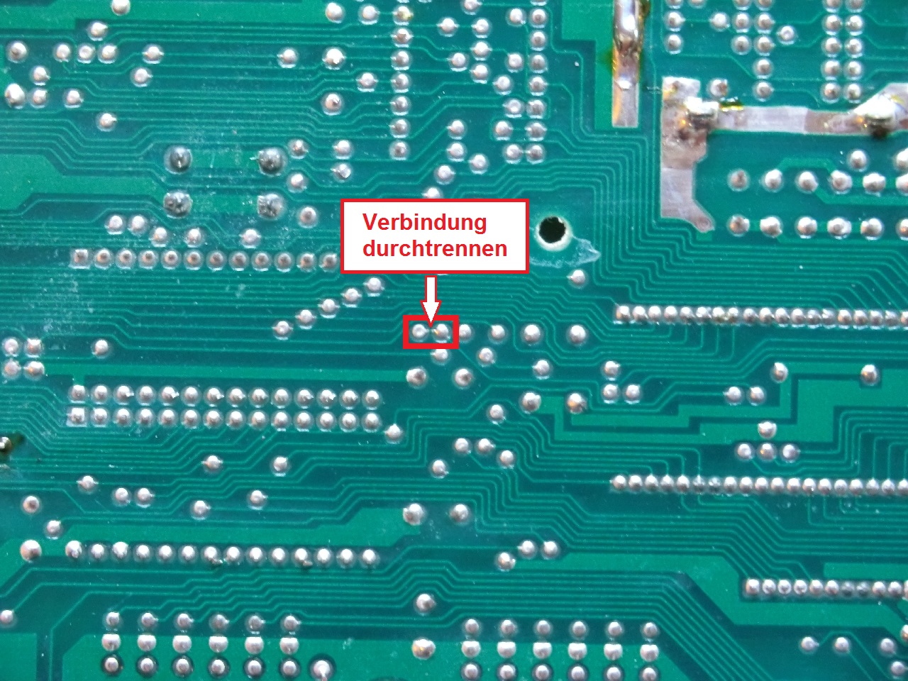 Wie ihr auf dem unterem Bild unschwer erkennen könnt bin ich Grobmotoriker beim Versuch die Verbindung zu durchtrennen erstmal mit dem Cuttermesser abgerutscht, habe aber glücklicherweise dabei nichts beschädigt. *puh* 🙂